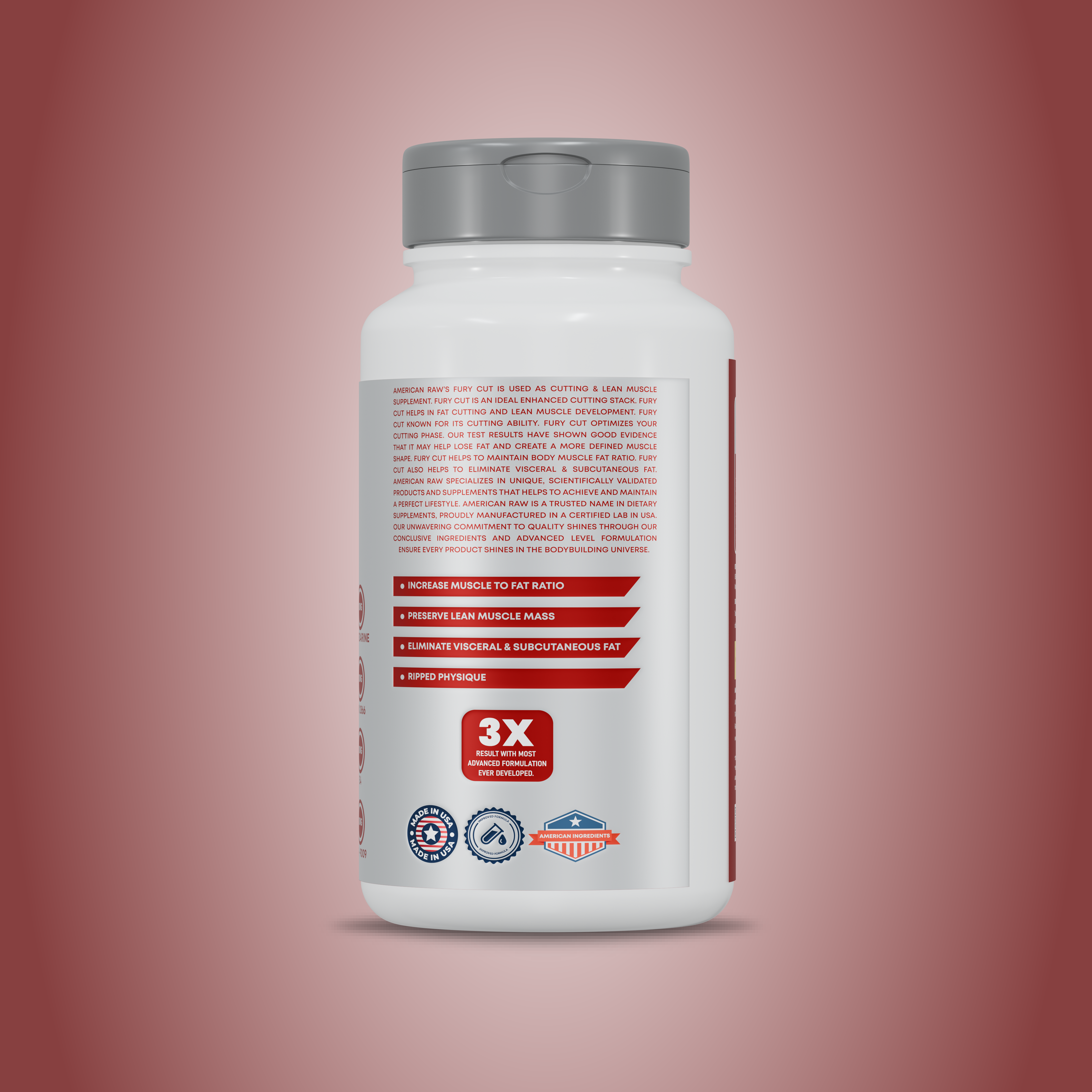 AMERICAN RAW'S FURY CUT IS USED AS CUTTING & LEAN MUSCLE SUPPLEMENT. FURY CUT IS AN IDEAL ENHANCED CUTTING STACK. FURY CUT HELPS IN FAT CUTTING AND LEAN MUSCLE DEVELOPMENT. FURY CUT KNOWN FOR ITS CUTTING ABILITY. FURY CUT OPTIMIZES YOUR CUTTING PHASE. OUR TEST RESULTS HAVE SHOWN GOOD EVIDENCE THAT IT MAY HELP LOSE FAT AND CREATE A MORE DEFINED MUSCLE SHAPE. FURY CUT HELPS TO MAINTAIN BODY MUSCLE FAT RATIO. FURY CUT ALSO HELPS TO ELIMINATE VISCERAL & SUBCUTANEOUS FAT.